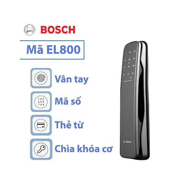 – Khóa cửa vân tay cao cấp Bosch EL-800AK là một sản phẩm cao cấp và độc đáo của thương hiệu Bosch. Với thiết kế push pull tiện lợi, sản phẩm này được sử dụng rộng rãi cho các cửa ra vào của các căn hộ, văn phòng, nhà hàng, khách sạn và các khu dân cư.